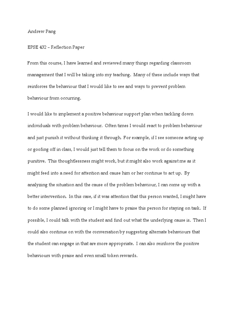 Example Of Reflection Paper On A Class : For example, explain your connection with the characters in the movie and if this would change if it were a book.. You can use an anecdote, a provocative question, or a quote to begin within the introduction. This type of writing applies mostly in creative arts but not limited to elsewhere. It may be in form of a book movie or artwork. Self reflective essay is a personal opinion as the author conveys their own feelings over a certain subject matter. Advanced knowledge or learning." by this definition we can gather that philosophy is, essentially, the pursuit of knowledge or understanding on a much higher level than usual.